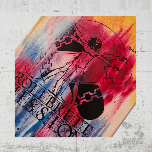 Bei Rollbrett Mission erhältst du Skateboard Decks in unterschiedlichen Breiten und Shapes zu fairen Preisen. Die Boards sind, wenn nicht anders angegeben, in der klassischen 7-Ply-Konstruktion aus kanadischem Bergahorn gefertigt. Wir schenken dir zu jedem Deck eine Lage schwarzes Griptape dazu. Gegen Aufpreis kannst du auch anderes Griptape von verschiedenen Marken in diversen Farben und Designs zu deinem Brett haben. Wenn du dein Griptape professionell aufgezogen haben möchtest, gib dies bitte als Kommentar im Warenkorb mit an. Wir ziehen dein Griptape gerne gratis für dich auf, dieser Service kostet bei uns nichts! Unsere Eigenmarke Rollbrett Mission Skateboards kommt aus einem international renommierten Woodshop, der auch für andere große Marken produziert. Unser Team ist von der Qualität und dem Shape absolut überzeugt! Neben dem klassischen Popsicle-Shape haben wir auch Decks in Oldschool-Shape, Pool-Shape oder Eggshape, auch Football Shape genannt. Der Rollbrett Mission Skateshop führt neben der Eigenmarke auch Decks von vielen anderen Brands wie z.B. Real, Toy Machine, Anti Hero, Foundation, Inpeddo, Alien Workshop, Ocean und viele weitere Skateboardmarken. Wir haben im Shop immer günstige Angebote an Skateboard Decks für Einsteiger oder langjährige Skater. Gerne bestellen wir dein Wunsch-Deck für dich nach und beraten dich jederzeit gerne. Die Deckbreite z.B. ist absolut Geschmackssache, da hat sich der Trend in den letzten Jahren wieder in Richtung breiter entwickelt. Der Durchschnitt bei erwachsenen Skatern liegt für Street und Park momentan bei 8.25 Inch (Zoll), was ca. 21cm Breite entspricht. Kinderboards sind schmäler und beginnen bei ca. 7.25 bis 8 Zoll. Aber auch Bretter von 8.5 bis über 9 Zoll sind immer beliebter. Skateboards werden traditionell in Zoll gemessen. Wir geben im Normalfall auch immer die Länge des Skateboard Decks und die Wheelbase mit an.